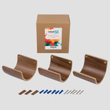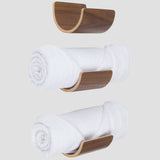 - Set of 3 Shelves for Rolled Towels: Made by bending responsibly sourced birch plywood with walnut outer layer.